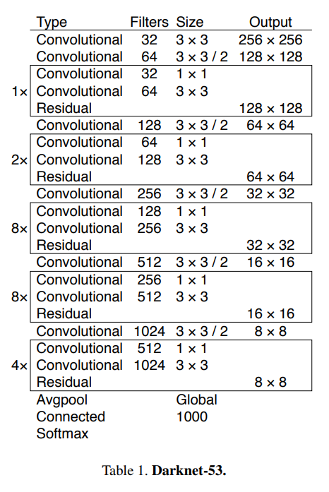 Yolo v3는 이름에서 알 수 있듯이 초기 Yolo Model에서 약간의 디자인의 변화를 준 모델이다. 320 x 320 yolo v3는 22ms 정도로 빠르며, SSD와 거의 정확도가 유사하다는 것을 장점으로 꼽고 있다.