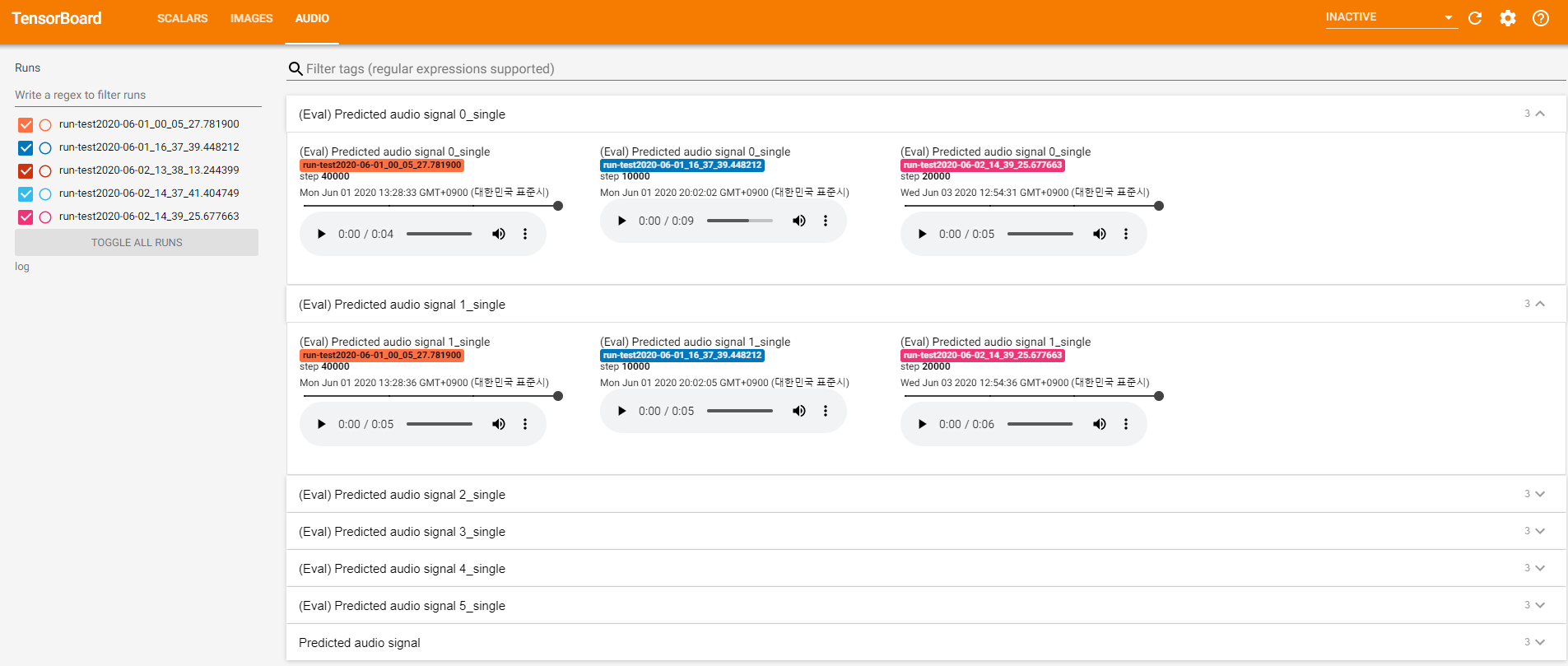 오디오 배너에서는 만들어진 샘플을 텐서보드에서 실제로 들어볼 수 있습니다.